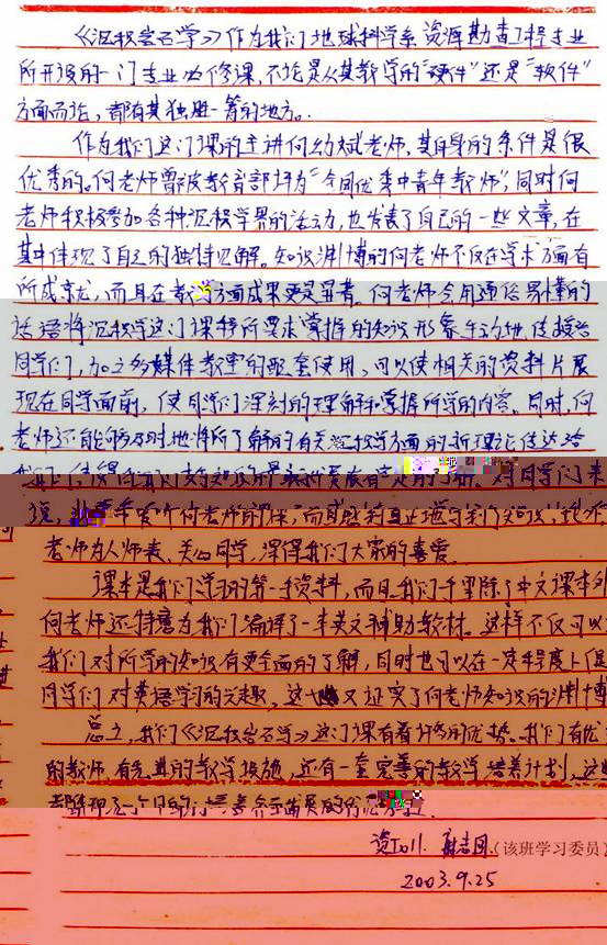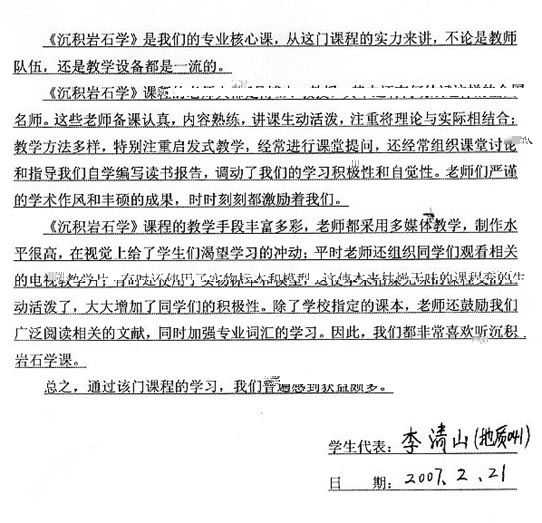 和地球化學、勘查技術與工程專業《沉積岩與沉積相》及部分研究生課程,圓滿完成了教學内容,