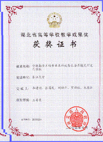 | 近五年來,課程建設小組教師積極開展教學研究,不斷改革教學方法,提高教學質量。先後有 7 人次獲得校級教學質量優秀獎, 1 人次獲得系級教學質量優秀獎。 2001年,“資源勘查工程專業人才培養方案及教學内容體系改革的研究與實踐”獲國家級高等教育教學成果二等獎。 2002年,《沉積岩石學》被評為湖北省普通高校第三屆省級優質課程,2003年被評為省級精品課程。 2004年,“資源勘查專業本科優秀生培養模式研究與實踐”獲永利6774app手机版官网教學成果一等獎,2005 年獲省級三等獎。 2004年,“沉積岩石學精品課程建設與教學改革”獲永利6774app手机版官网教學成果特等獎,2005 年獲省級一等獎。 2004年,“長江三峽地層沉積相微縮剖面教學基地建設與研究”獲永利6774app手机版官网教學成果一等獎,2005 年獲省級一等獎。