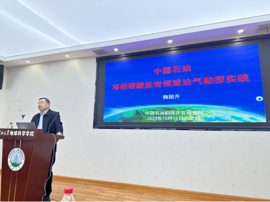 10月12日下午,中國石油勘探開發研究院首席技術專家魏國齊教授莅臨永利6774app手机版官网地學之光大講堂,為我院師生帶來了題為《中國石油海相碳酸鹽岩領域油氣勘探實踐》的精彩講座。講座由永利6774app手机版官网副院長吳楠教授主持。