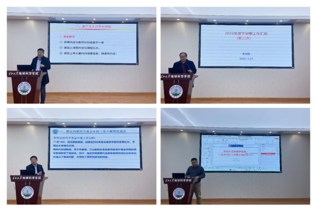 副院長吳楠就海外青年學者論壇、地質學博士點申報、高層次人才引進等方面進行了通報與安排。吳楠強調,人才引育和學科發展是學院發展最重要的兩個方面,兩者相輔相成。學院發展關鍵是人才,人才是内涵式發展的根本,未來要把人才引育作為頭等大事來做。