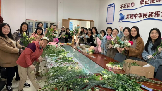 3月8日上午,在學院C101黨員活動室,分工會給每位老師準備了一盆可愛的小多肉當禮物,同時,老師們自主學習、巧手修剪、搭配花枝、交流技巧,拿出授課、做科研的專研精神,經過精巧的修飾與加工,在歡聲笑語中将各色玫瑰、百合等普通的鮮花變成了令人賞心悅目的藝術品。大家手持自己的作品拍照留念,臉上洋溢着滿滿的幸福和成就感。