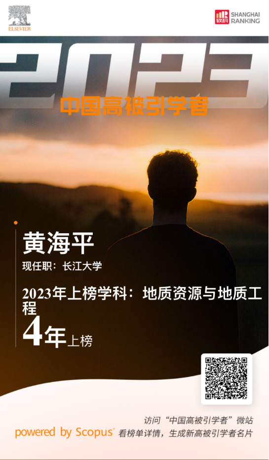 近日,備受國内外衆多媒體和學者高度關注矚目的愛思唯爾(Elsevier) 2023“中國高被引學者”(Highly Cited Chinese Researchers) 榜單發布,我院特聘專家黃海平教授在地質資源與地質工程學科上榜。