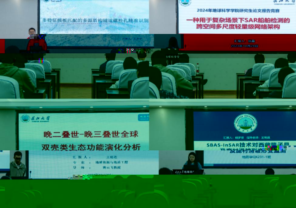 王林同學從物源出發,結合研究區具體環境分析坳陷湖盆細粒重力流沉積特征、王延達同學建立雙殼類數據庫,以全新視角确定了中生代海洋革命的開始時間始于晚三疊世、張躍同學創新性的以動态模型指導逐點金字塔點雲語義分割架構。從儲層沉積到非常規油氣,從地球化學分析到遙感水文,選手們主題豐富、條理清晰的彙報,引人入勝。評委們的提問與點評更是“一針見血”,饒松教授提醒大家題目要凝練,突出核心問題,不同分流河道是如何形成的,它們又是怎麼作用到成岩作用的,對儲層預測有何幫助等提問,引發同學們的思考。陳梅老師就報告中研究區段是否受明顯底流作用,引導同學們進一步明确各種因素對沉積相成因的影響,并表達了對大家所彙報的科研成果的肯定。王喜鑫教授提醒黃婉滢同學把高寒山區岩石脆性評價方法同油氣開發相結合,并對比其他區域的脆性評價方法有何差異性,其中蘊含的研究同生産需要結合、建立對比關系的思維,給在座研究生擴展了新思路。劉遠剛教授借蘇振峰同學關于水體提取分析的彙報,指出掌握一定的水文知識,将遙感技術同水文監測結合,符合目前交叉學科的需要,大有裨益。吳楠教授對魏夢雪同學關于滑坡監測的彙報給予肯定,表示希望大家深入思考研究成果的應用價值,期待大家能真正“把論文寫在祖國的大地上”。朱院長以趙國春院士近期的彙報,對同學們提出了新要求,希望大家再接再厲,做出更多的高水平論文。