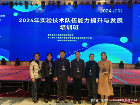 (通訊員:高達、豐勇)為進一步加強高水平專業化實驗技術隊伍建設,提升實驗室管理能力、實驗技術能力與服務能力,為學院學科建設、人才培養及教學科研提供強有力支撐,11月29日~12月1日,實驗中心豐勇、高達、高潔、辛長靜、胡九珍和徐豔霞等6名教師赴浙江杭州參加“2024年實驗技術隊伍能力提升與發展培訓班”。