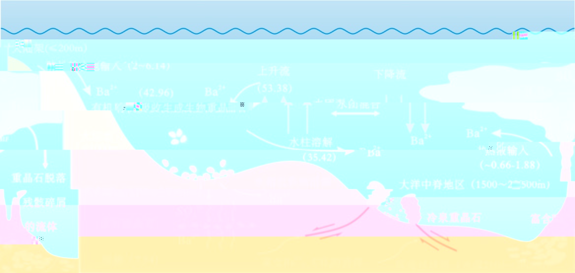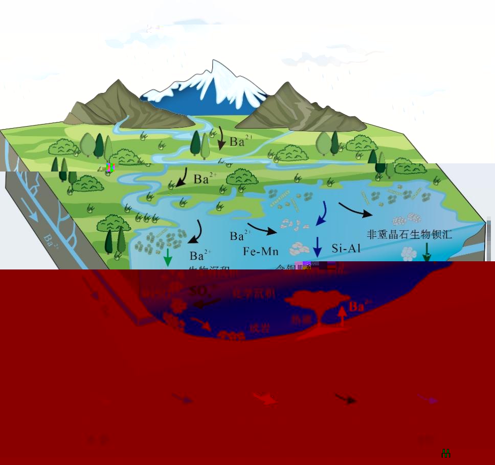 本文基于鋇元素及其同位素的地球化學特征,系統闡述了鋇在地球各圈層的儲庫分布與循環機制:海洋鋇循環受陸源輸入、熱液活動及生物過程協同驅動—生物代謝釋放形成動态“源”,陸源與熱液物質沉降埋藏形成“彙”,源與彙的動态切換維持了鋇循環的持續運轉(圖2)。研究進一步揭示,重晶石作為鋇的主要彙聚形式,可分為沉積型和成岩型,其形成機理、通量及分布特征為示蹤古環境提供了關鍵依據(圖3)。