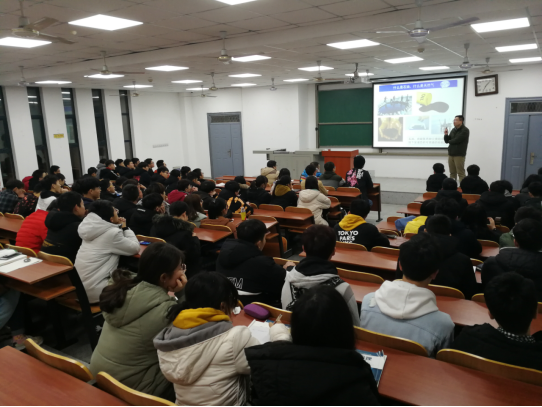 肖傳桃老師從地質學專業建設情況及學生個人規劃等方面進行了講解。他從地質學的雙一流學科背景出發,向同學們介紹了目前地質(資源)和地質(工程)兩個專業方向的特點。他以我院近幾年的考研優異成績舉例,鼓勵同學們努力學習專業知識,永攀科研高峰。随後,他從國家能源戰略支撐的角度指出地質學專業的發展前景,向同學們介紹了廣闊的就業市場需求。此外,肖老師還向大家介紹了國際交流合作辦學等選擇,鼓勵同學們培養國際化視野。院長何幼斌寄語同學們要明晰學習方向,對所學專業進行深入了解,既要埋頭苦幹,又要擡頭看路,讓自己的發展道路更加光明。