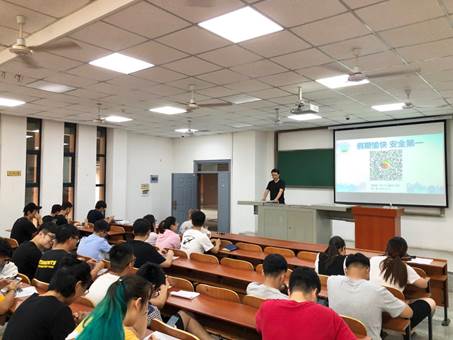 會議開始,潘志遠老師從人身安全、消防安全、交通安全、防溺水安全等四個方面為學生講解暑期留校注意事項,教會大家如何有效防範安全事故的發生,保證在校度過一個安全的、健康的、有意義的暑假。