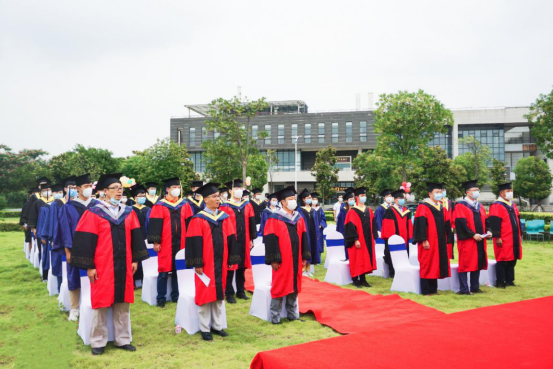 在雄壯的國歌聲中,畢業典禮正式拉開帷幕。雖然戴着口罩,但師生們的歌聲依舊嘹亮、富有激情,為這一刻的到來,大家已等待了太久。宣讀文件、授予學位、院長胡明毅教授為到場的畢業生一一撥穗正冠,并合影留念。