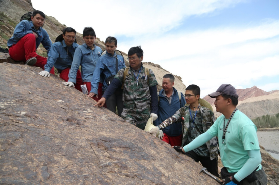 近日,我院張尚鋒教授及“塔裡木盆地典型露頭地質信息采集和地質工程一體化實習基地建設”項目團隊在對塔裡木盆地侏羅系地層測量過程中,首次發現大量恐龍足迹化石,并經過相關專家鑒定,認定屬于獸腳類食肉恐龍足迹化石。這一發現填補了南疆盆地相關研究的空白。