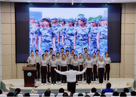 “我不怕風和雨期待笑和痛...”《渴望光榮》昂揚的旋律響起,19名新生代表登台獻唱。大熒幕上一幕幕熟悉的軍訓場景和嘹亮的歌聲,引起在場師生的強烈共鳴,同學們瞬間回到“熱騰騰”的訓練場,一曲終了掌聲沸騰。