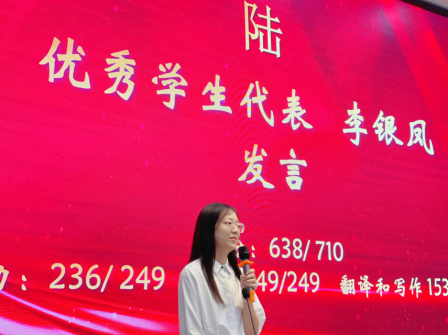 四級優秀個人李銀鳳作為優秀學生代表,在發言中勉勵新同學“做三四月的事,八九月自然有答案。讓我們朝着堅定的目标一直走下去,不辜負自己的努力與汗水!”
