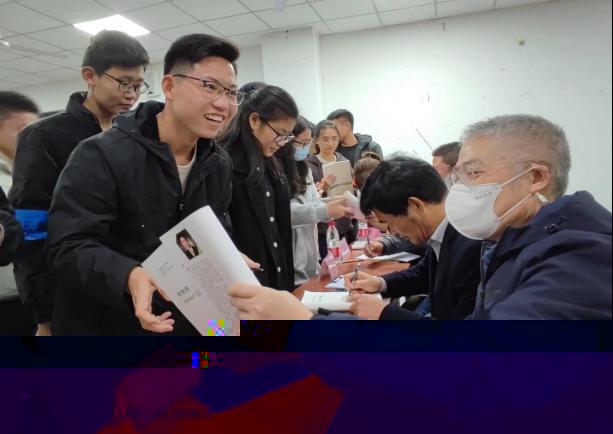 老師們還給大家帶來“驚喜”,現場為同學們簽名贈書。同學們都化身為“追星”族,争先恐後的讓老師們簽名,各位老師真誠地與大家交流,在書上留下簽名和寄語。地信22102班胡景怡說:“準備比賽時我們班每天晚上在自習室複習到10點半,大家互相答疑解惑,學習氣氛非常濃厚。”資工22101班張佳禾說:“老教授們對地學專業的熱愛與無私奉獻,讓我們熱淚盈眶,我們要以老師們為榜樣,成為地球生命的見證者和守護者,做有情懷、有使命、有責任的地質人。”