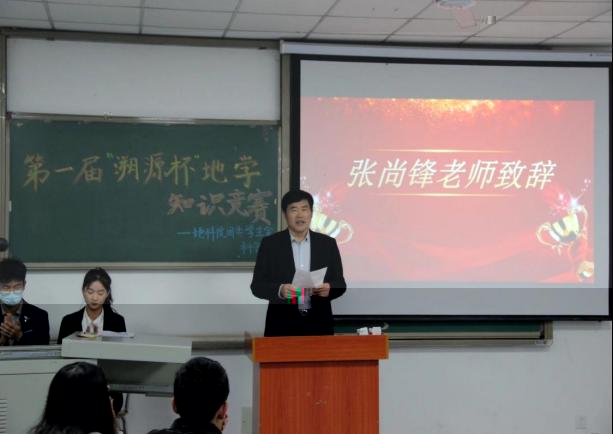 很快比賽進入尾聲,統計分數間隙,教師代表張尚鋒教授緻辭。張教授以“大愛鑄就自我騰飛之路”為主題,引導同學們要胸懷大愛,愛國家、愛地球,并勉勵在座學子邁好大學專業學習第一步,腳踏實地,勤奮刻苦,成為地科學子的驕傲。同學們深受鼓舞,一陣陣掌聲久久地回蕩在教室之中。