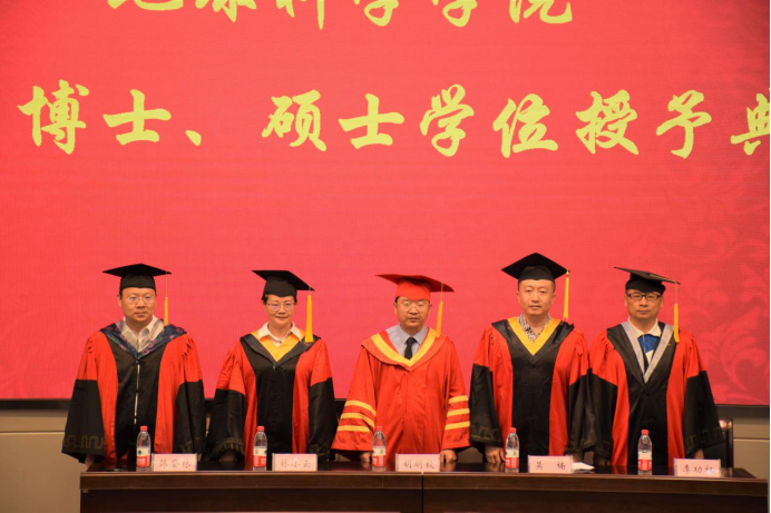 在熱烈的掌聲中,院長胡明毅、副院長吳楠教授、副院長韓登林教授、石油系林小雲教授、地質系胡光明教授、石油系陳軒副教授、地信系李功權副教授、地科系江山副教授等八位導師先後分别列席畢業生學位授予儀式并上台就坐。出席畢業生學位授予儀式的還有地科學院黨委書記楊全輝、副院長丁四兵、黨委副書記任倩,以及各年級輔導員,他們共同見證這一難忘時刻。