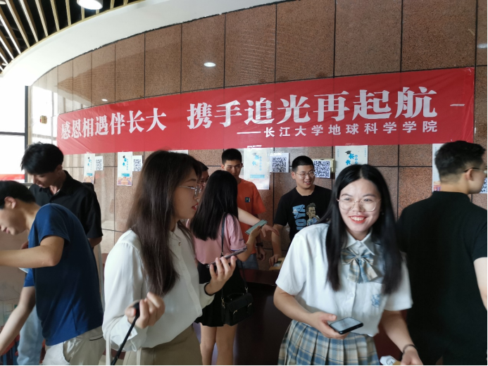 會場外,學院精心組織了“長大我想對你說”畢業生感恩活動,一張張富有長大元素的明信片,一朵朵綻放的向日葵,更有印有學院元素的斜跨帆布包,寄托着學院對畢業生“感恩相遇伴長大,攜手追光再起航”的殷切期盼。在現場,同學們通過掃碼,寫下了自己想對母校、對老師、對親人的感恩與祝福,或有對未來的美好期待。資工21802班的鄧智祿說:“非常感恩母院的每一位老師,他們平時很關心我們,陪伴和見證了我們四年的成長,給了我很多溫暖和感動!”