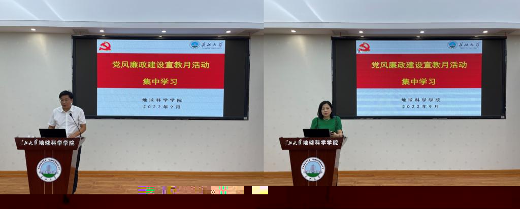 會議第二階段,黨委書記楊全輝以《深入推進清廉地科建設 永葆清正廉潔政治本色》為題為全體教職工講授專題廉政黨課,并做了紀法宣講宣傳,重點學習了《中國共産黨紀律處分條例》;黨委副書記任倩結合近期國内高校的典型案例及發生在身邊的典型案例,深入開展了以案說德、說紀、說法、說責的警示教育,要求全體教職工要從鮮活案例中吸取教訓,要知敬畏,存戒懼,築牢防線,守住底線,遠離紅線。