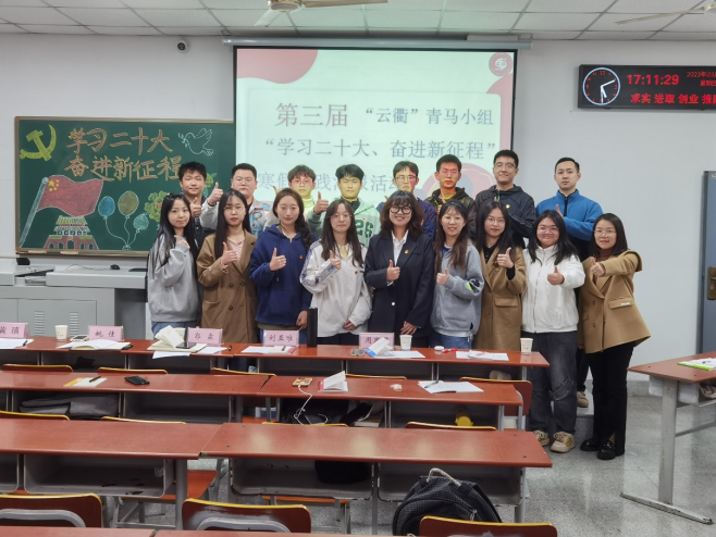 本次活動的主題為“學習二十大,奮進新征程”,由“雲衢”二組組員進行答辯,“雲衢”一組組員進行籌辦工作,院團委書記郭霖老師,學工辦黃瑱老師、姚佳老師參會。