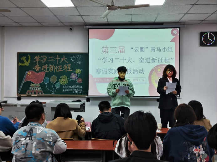 (通訊員 史曉岩)2022年10月16日在北京舉行了黨的第二十次全國代表大會,為了學習和貫徹習近平總書記的重要講話和會議精神,我院“雲衢”青馬學習小組開展了以領會黨的第二十次全國代表大會精神為主要任務的寒假實踐活動,并于2023年3月16日下午在教學樓B204教室進行了第一場交流彙報。