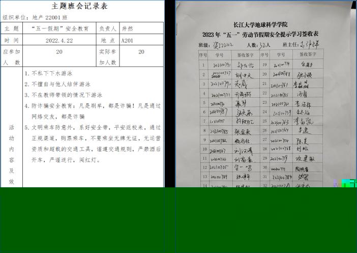 “五一”假期臨近,為做好全院學生節前安全教育工作,進一步增強學生的安全防範意識,4月20日至24日學院各班陸續開展了“五一”假期安全主題教育班會。