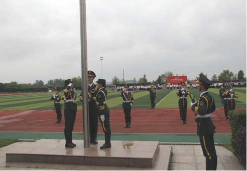 第二項,由國旗護衛隊進行升旗儀式,隊員們步伐堅定,身姿挺拔,五星紅旗伴随着《義勇軍進行曲》的奏響徐徐升起,全場肅穆,向國旗行注目禮,全體師生心中飽含對祖國深沉的愛意。