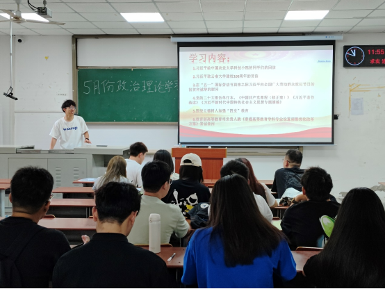 (通訊員 王少甯)為督促我院研究生深入學習貫徹習近平新時代中國特色社會主義思想,深入學習“四史”教育的價值導向,提升我院研究生政治理論素養,在思想上、政治上、行動上時刻同黨中央保持高度一緻。于5月31日正午,我院研究生在武教A108教室集中進行了線下政治理論學習活動,此次政治理學習活動由研究生會主席劉作松主持與講解,部分研究生參加。