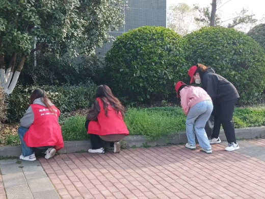 同學們穿着紅馬甲,帶上一次性手套、垃圾袋等勞動工具,在團旗的引領下,迅速投入到活動當中。
