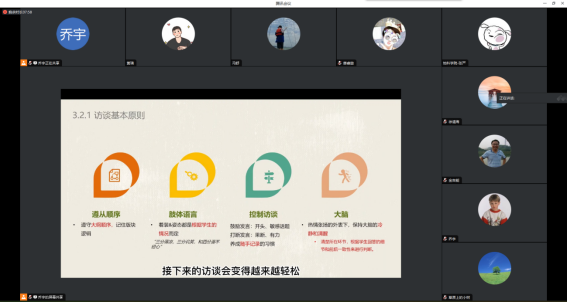 培訓會上,大家共同觀看學校心理健康教育中心制作的《心理測評量表講解》和《談心談話培訓》視頻,了解新生常見心理問題,并學習如何進行有效的訪談和幹預:如通過非言語行為進行傾聽、以自我暴露建立信任關系、沉默的處理、通過學生幹部側面了解學生等方法,全面了解學生在生活、學習、人際、身體、情緒等各方面的動态。此外,唐溢老師特别提醒訪談老師在工作中應注重保護學生隐私。