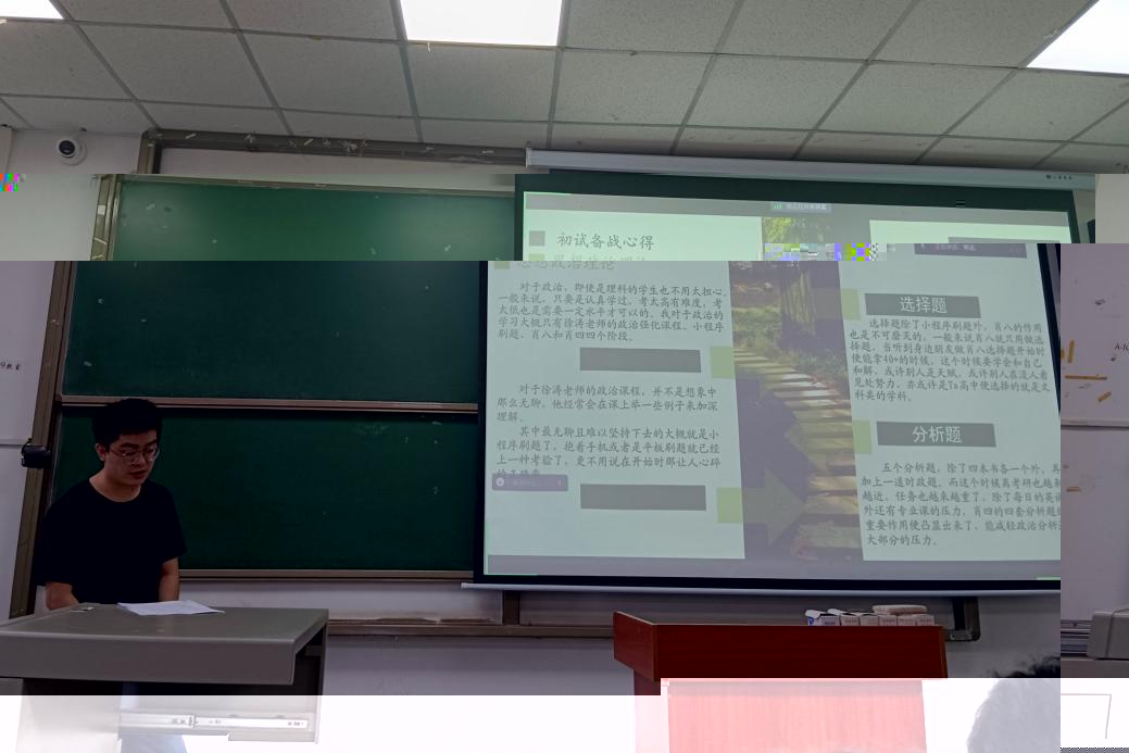 地信22001班的翁向向強調了制定備考計劃的重要性,并以自身為例分科目向大家介紹了如何科學高效的開展複習。她提到:“大家一定要結合自身實際找到适合自己的老師,不要随波逐流。”