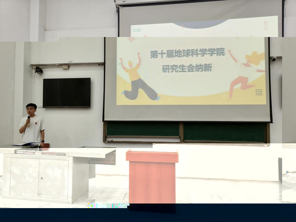 會議第四部分,研究生會主席團成員李世澤進行招新宣講,他從研究生會組成、部門職責、組織生活等方面進行介紹,号召同學們加入研究生會共同成長,共創輝煌。