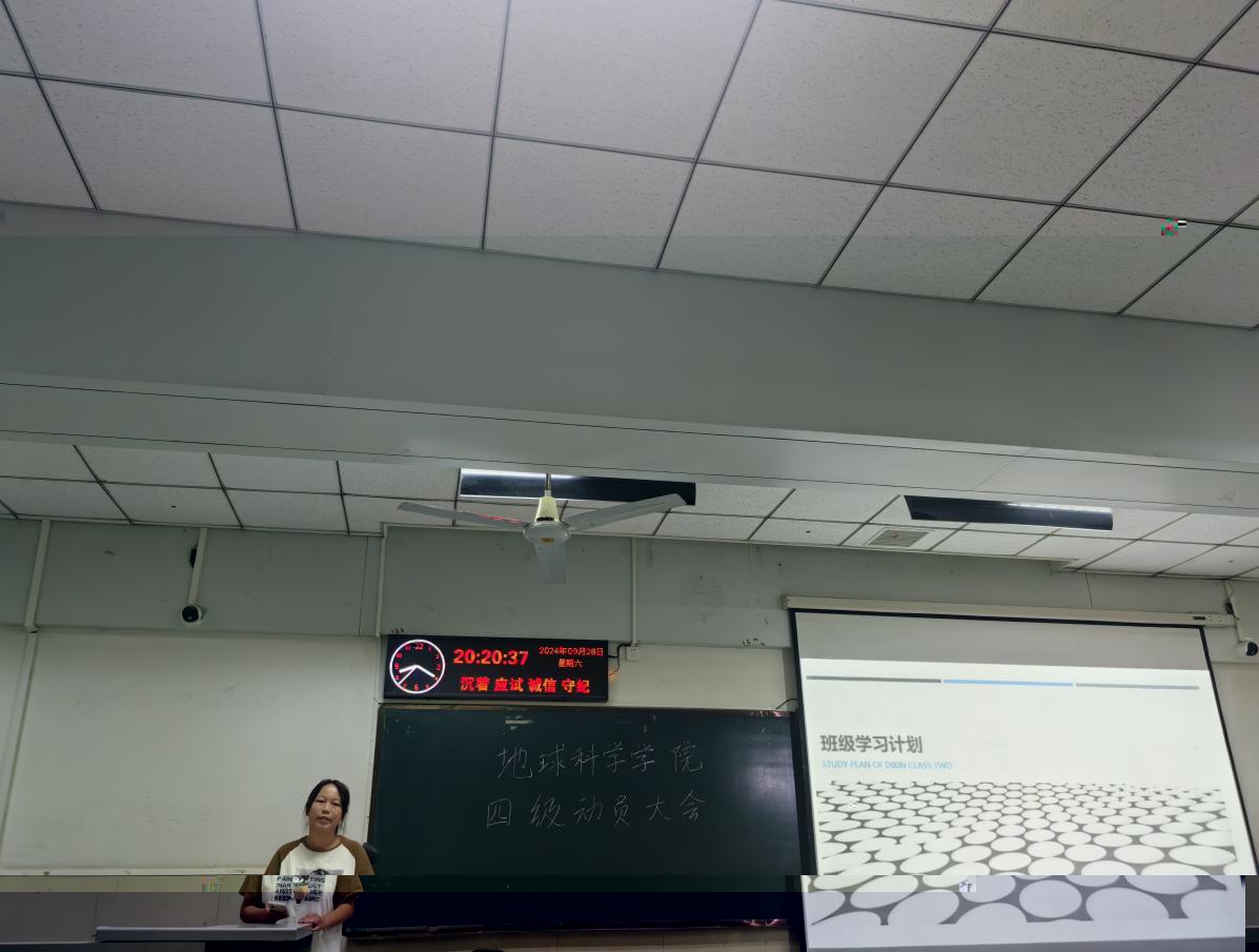 随後,學委代表資工12401唐磊,資工12404張紫儀,地信12402吳睿,地質12401吳天伊依次上台,全面展示了各班精心制定的英語四級學習計劃。這些計劃從學習小組的組建、學習計劃的安排到學習階段的檢測等方面都進行了細緻的規劃。班級學習計劃包括成立學習小組,通過成員之間的互相督促,實現共同進步,小組成員可以定期交流學習心得、分享學習資源,營造出濃厚的學習氛圍;制定詳細的學習時間表,合理安排每天的學習任務。從清晨的晨讀練習到晚間的複習鞏固,每個時間段都有明确的學習目标,确保學習的系統性和連貫性;定期進行學習階段檢測,通過模拟考試、小測驗等方式及時發現問題,并在老師和同學的幫助下加以解決。
