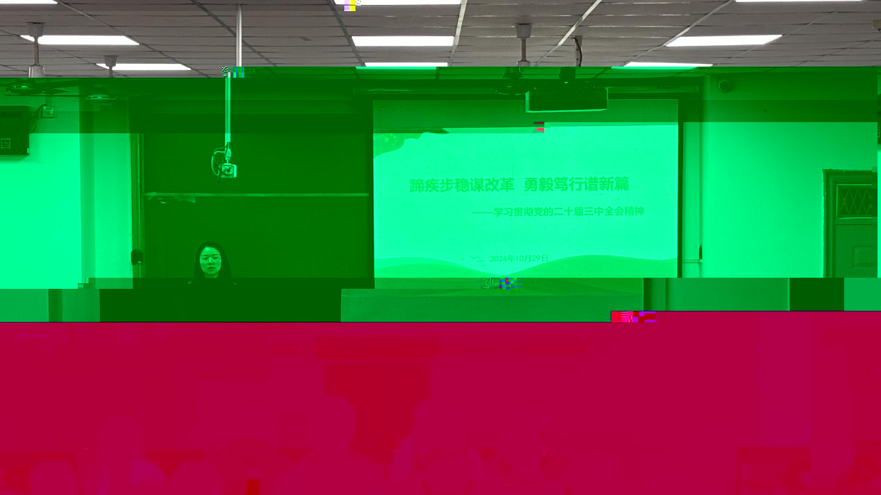 随後,郭老師圍繞黨的二十屆三中全會的主題由來、做出的部署以及展現的創新三個方面,對全會精神進行了系統深入的解讀。她通過生動的闡述、具體的案例和詳實的數據,使在座同學對全會精神有了更深刻的理解和認識。郭老師還特别提到,面對紛繁複雜的國際國内形勢、新一輪科技革命和産業變革以及人民群衆的新期待,我們必須自覺把改革擺在更加突出的位置,緊緊圍繞推進中國式現代化進一步全面深化改革。