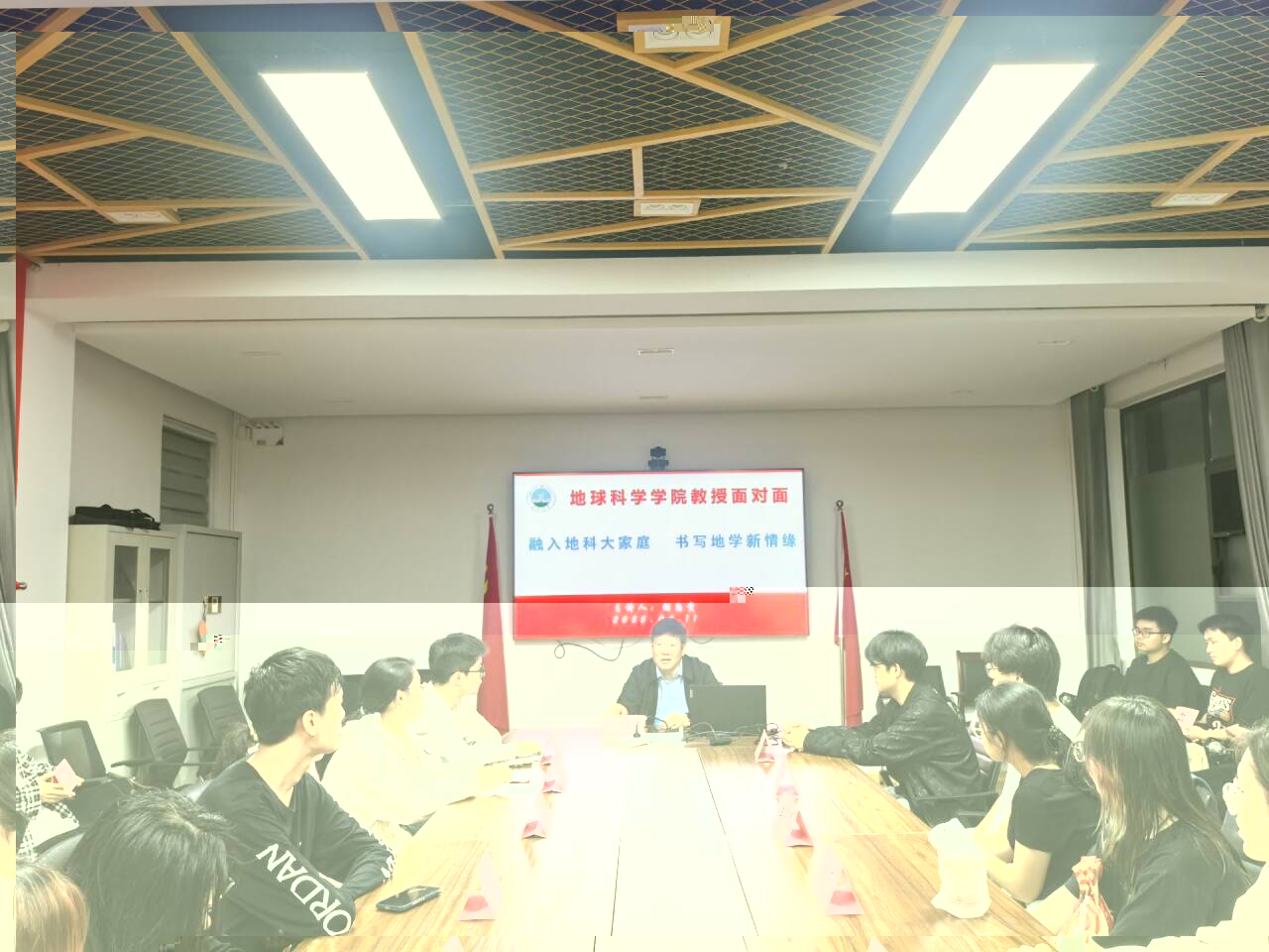 座談會上,胡教授從學院曆史積澱,學科發展前沿,人才培養特色,三個維度展開分享。他分享了學院的發展曆程和近年來在教學方面取得的豐碩成果和各種獎項,從教學課程、教學資源、學科競賽等多個方面深入闡述了學院對學生的培養計劃,并以優秀畢業生為案例激勵同學們在本科階段紮實專業基礎課程,做好學習規劃,努力奮鬥,讓同學們明确專業特征,樹立學習目标。同時,胡教授為各位新同學生動詳細地講解了沉積岩的形成過程,激發了各位同學的學習興趣與學習熱情。