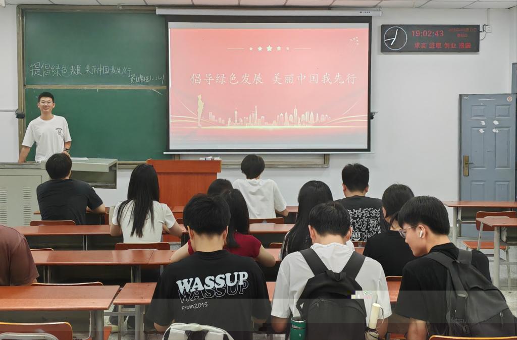 團支書成星星首先闡釋“倡導綠色發展,美麗中國我先行”理念内涵,結合生态環保案例,說明綠色發展對美麗中國建設的關鍵意義。接着圍繞“青年在綠色發展與美麗中國建設中的責任與行動”這一主題,動員大家用實際行動踐行綠色生活,以專業所學助力生态保護與綠色發展。