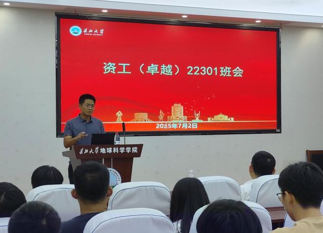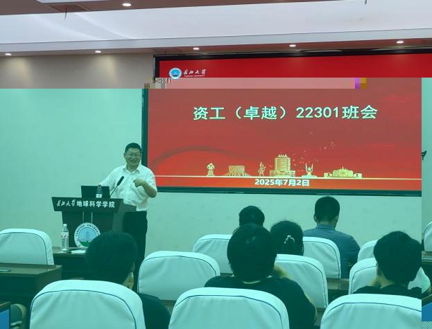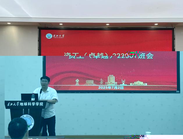 班會伊始,朱光有院長就開宗明義地指出:"同學們要牢記,地質人的腳步永遠向着遠方,但根基必須紮在當下。資源勘查工程是艱苦專業,但更是充滿機遇的領域。看到你們這一學期在學業、科研、實踐等方面取得的進步,我深感欣慰。"同時強調:"專業素養是立身之本,英語能力是發展之翼,希望同學們繼續保持這種全面發展的良好态勢。"