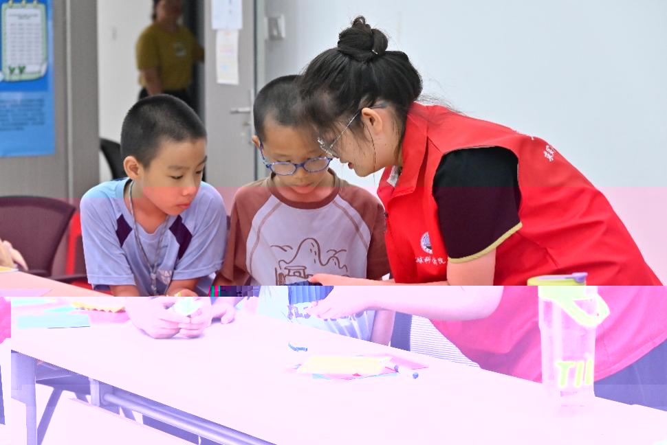 “這裡要對齊邊角,折的時候用力均勻一點……”志願者們穿梭在孩子間,針對大家遇到的難點逐一解答。小朋友們專注地跟着步驟操作,時不時舉着半成品向老師請教。