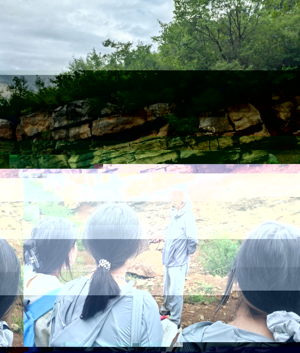 雞冠山小斷層、王鐵莊小背斜、黑山窯角度不整合等明顯的地質構造,讓書本中抽象的概念活靈活現地出現在大家面前,地質(創新)22401吳天伊說:“實習路線中的岩層露頭極為醒目,層層疊疊的岩石紋理清晰可辨。這得天獨厚的觀察條件,恰似一把鑰匙,引領我們深入、直觀地探索地質奧秘,令人受益匪淺。”實習采用小組合作模式,每三人組成一個地質小組。"我測量,你記錄,他采樣"各實習小組通過分工協作、群策群力完成實踐任務,同學們培養了合理分工、相互校驗、集思廣益的能力,共同解決實際問題。