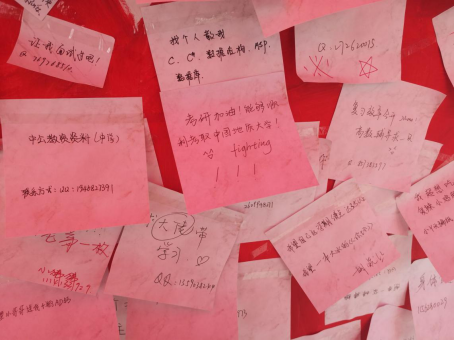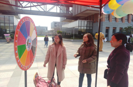 除此之外,還開展了别開生面的“心願便利貼”和“幸運大轉盤”的活動。心願便利貼上承載着女生們的美好期望和更高目标,例如“穩過四六級”,“一起晨跑、健身”,“尋找考研小夥伴”等等。貼上心願便利貼的女生們會獲得轉幸運大轉盤的機會。男生們則可以通過實現女生在便利貼上寫的願望和女生一起在3月7日領取獎品。大家都積極地參加到了活動中來,現場十分熱鬧。有些老師看到後也高興地來參加到了活動中來。