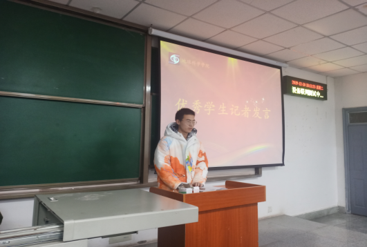 接着,優秀學生記者代表衛泂釩向大家分享自己的學生記者之路,他作為校區校報記者團團長在談及自己的進步時說到:“從一名懵懂的見習記者到如今可以單獨成稿的成熟學生記者,其中的努力付出與心酸苦澀隻有自己明白,明天的路還很長,我們還要繼續努力,為校媒的發展貢獻力量。”