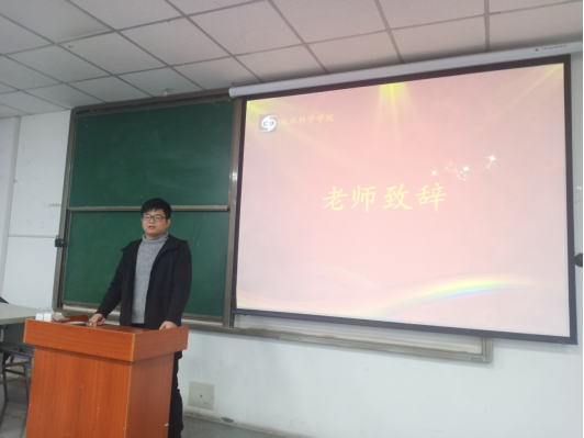 最後,潘志遠老師對本學年的新聞工作進行總結。在講話中,潘老師首先對獲得表彰的學生記者及通訊員表示祝賀,接着對本學年的新聞工作表示充分的肯定與贊揚,并鼓勵同學們在未來的學習工作中勤勉盡責,有所收獲,也提出我院學生記者應當不斷加強學習,提升能力,寫出更多高質量的新聞作品。