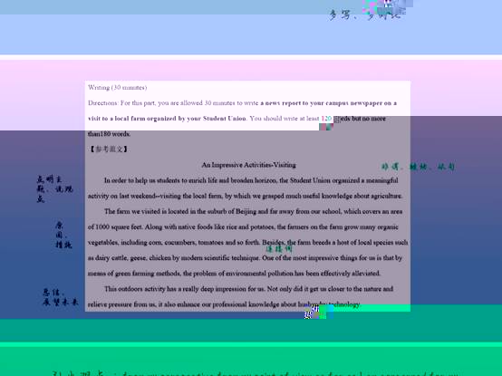 本次交流會目的在于提高同學們在英語四級考試中作文及翻譯部分的得分。首先,來自資工21803班的餘舜禹同學從四級分值、寫作技巧、翻譯專精和個人考試感想四個方面為同學們講解了四級考試中需要注意的問題。他強調在英語四級考試中,分數占比最大的是聽力和閱讀,但是翻譯和寫作卻是比較容易得分的部分。同時他也為同學們分享了自己的學習方法,即背誦範文,學會靈活運用。例如:可以認真學習範文中的一些句式和比較精彩的表達,然後将其運用到自己的文章中。接着,他又指出同學們在翻譯中經常出現的“翻譯在最後寫”、“時間不夠用”、“對于一些主題,發揮空間有限”、“忘記單詞或者短語”以及“中國式英語”等一系列問題。針對這些問題,他指出平日必須多累積,經常系統性的做一些模拟測試。最後,他着重強調備考的重要性,希望同學們堅決做到不裸考,争取獲得滿意的成績。