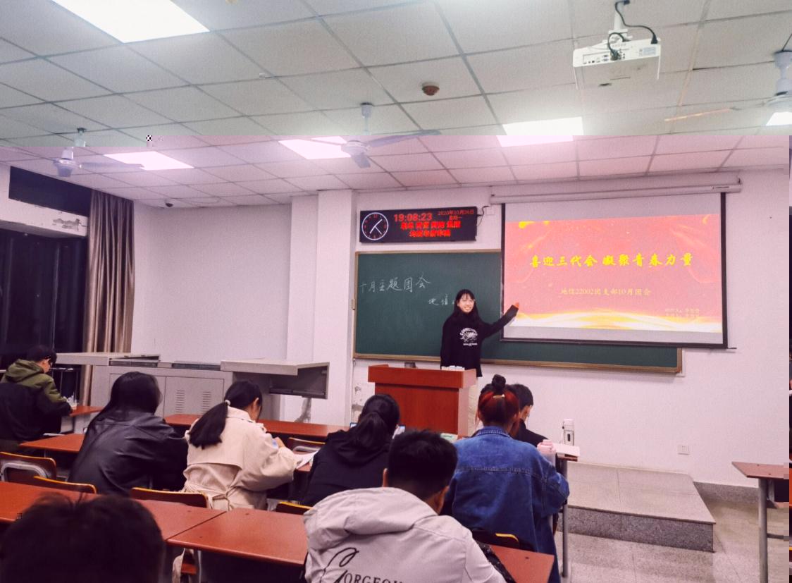 (通訊員 付嬌)10月26日,地信22002團支部全體團員于武教B-312召開了10月份團會活動,本次團會的主題是“喜迎三代會,凝聚青春力量”。