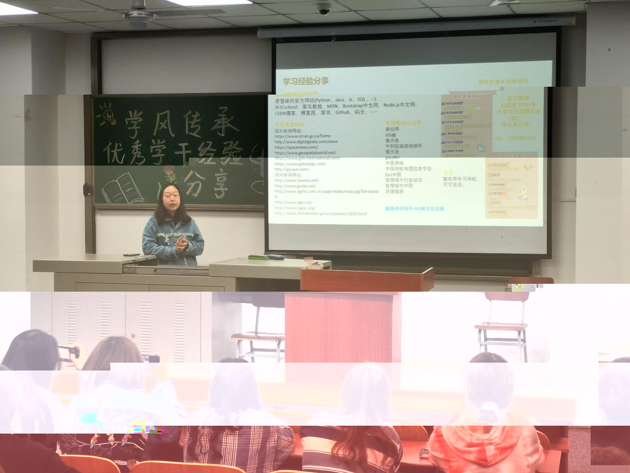 在地理信息科學專業的分享會上,主講人有來自地信(測繪)21901的湯文惠學姐和地信21702并且已經被推免到中國地質大學(武漢)的任安晶學姐。湯文惠就學習和生活兩個方面開始今天的演講,在學習方面,她着重為新生們分享了學習英語的方法與經驗;在生活方面,她希望新生們不宜貪多,不要輕易放棄,不要輕易否定自我并且要學會分清主次,合理安排時間,懂得調節情緒。任安晶為新生們展示了自己的優異成績,分享了寶貴的學習經驗,推薦了許多學習的資源,并将“自學自律、敢闖敢拼、良師益友、學無止境”的生活和學習态度分享給學弟學妹們。