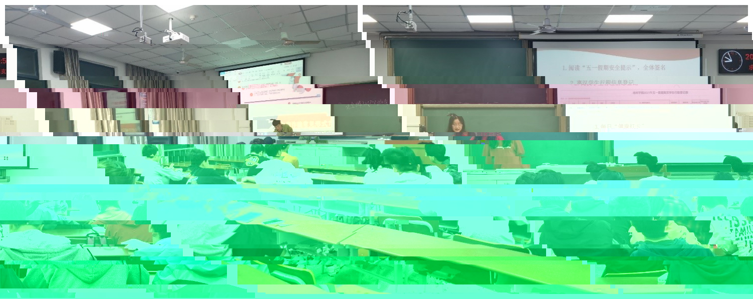 接下來,郭霖老師針對一系列安全問題做了詳細安排和說明。一是宿舍管理方面。郭老師通報了4月份我院學生宿舍使用違規電器和晚歸情況,并對事件危害進行了分析,提醒大家務必遵守學校相關規定,安全高于一切。二是五一假期安全。要求各班班長召開安全主題班會,在班會上做好防溺水、運動安全、防電信詐騙和五一假期安全四個方面的教育,重點做好“國家反詐中心”APP和微信公衆号“金鐘罩”的下載與認證、假期離漢學生的行程登記、假期安全教育告知書的簽收等。