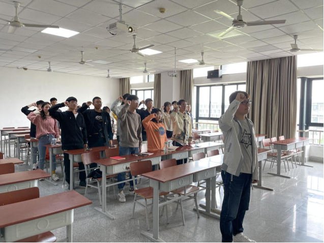 會上,全體黨員唱國歌,重溫入黨誓詞。