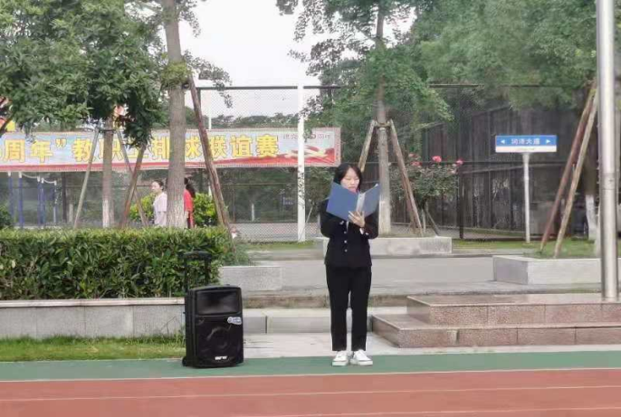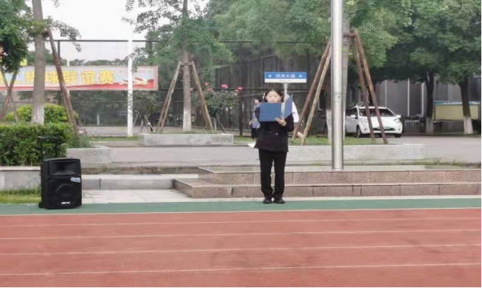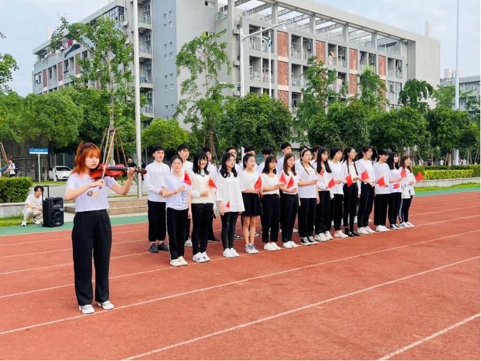 升旗儀式開始前,全體師生進行“唱紅歌”環節。在資工22004班和院學生會同學們的帶領下,全體同學滿懷熱情,先後齊唱了《國家》和《閃閃的紅星》,兩首歌曲,嘹亮的歌聲響徹整個操場。
