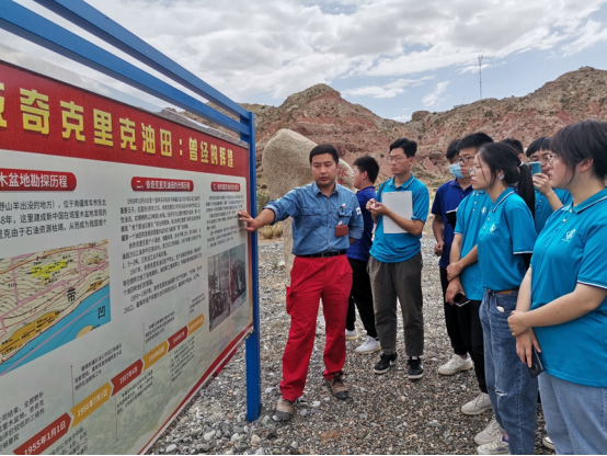 (通訊員:畢恒威、李維)7月28日早十點,在迪那油氣開發部田鵬總工程師的帶領下,“後浪”暑期社會實踐隊全體隊員乘車前往野外參觀依奇克裡克油田和健人溝,全面學習石油先輩事迹,深刻領悟石油人精神。