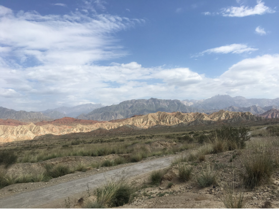 原本枯燥乏味的兩個小時車程,卻因窗外的美景讓所有人興奮起來,一路上的山川風景讓隊員們感歎山河的壯觀,驚歎新疆自然風光的瑰麗。車隊穿過蜿蜒河谷,駛過崎岖山道,窗外重山疊裡,色彩斑斓,風景如畫。這窗外飛逝的美景每一刻都在震撼所有人的心靈,沒有人不感歎大自然的鬼斧神工。