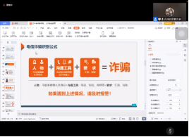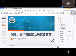 藝傳學院肖淳老師就網絡、反詐與國家公共安全教育這一主題進行分享。肖老師講到武漢校區今年已經發生22起詐騙案件,其中有不少是同學們在之前的專題講座中聽過的“常見的詐騙手段”。她提到當一個人放松警惕時,就給了騙子可乘之機,提醒大家務必高度重視、認真完成每周反詐測試,保護個人财産安全。