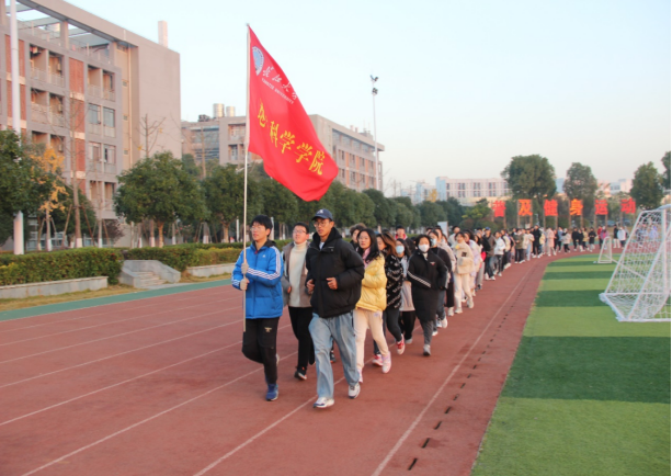 為提高同學的綜合素養,升旗儀式後舉行健康跑活動,同學們在“随風奔跑自由是方向,追逐雷和閃電的力量......”的歌聲中,全院學生如一條長龍在操場上奔跑。隊伍最前方鮮紅的院旗代表着學子們昂揚的心。