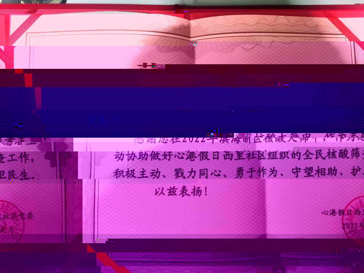 圖一 社區黨委給予李嘉偉同學的榮譽證書